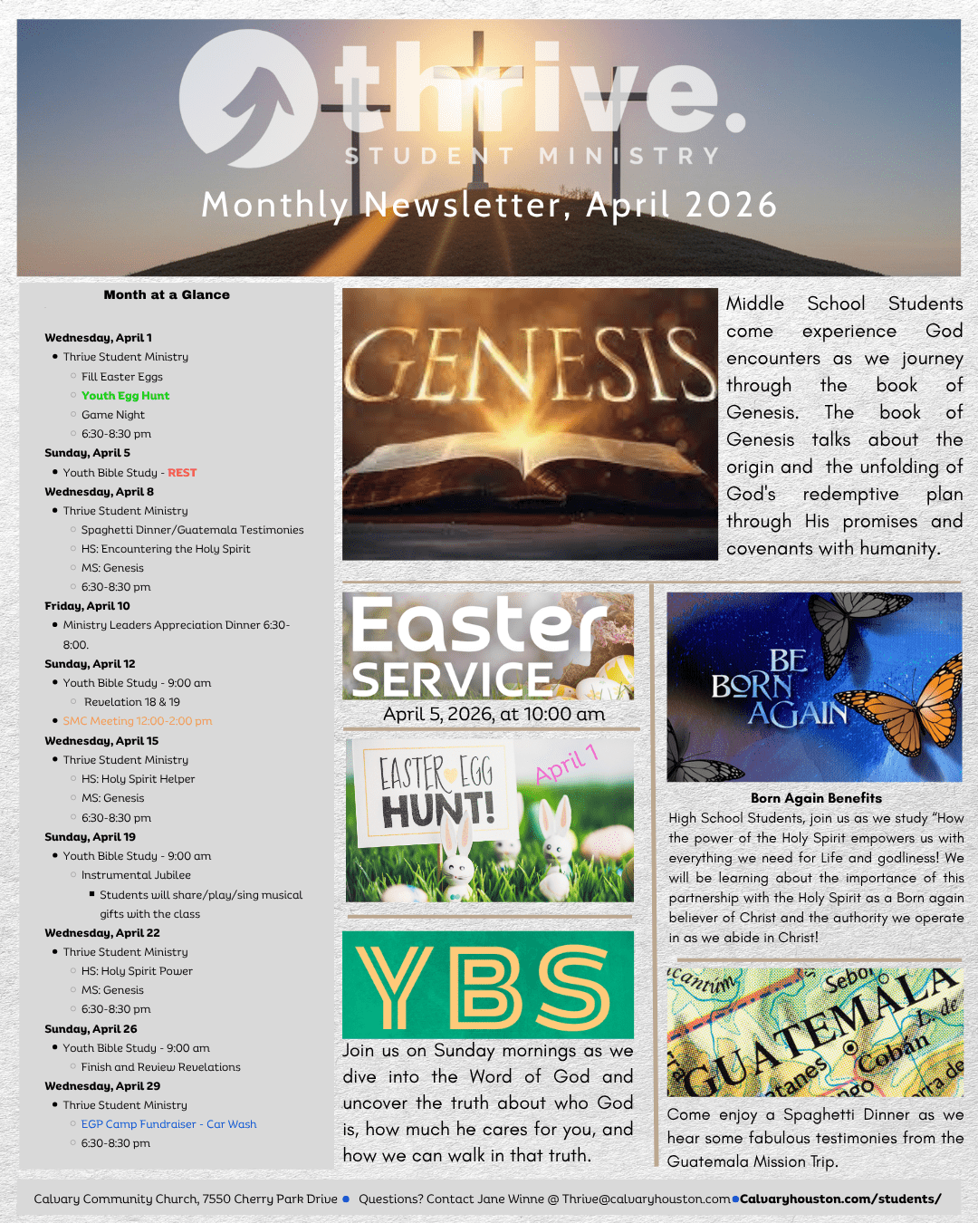 For more information on how to stay engaged with Thrive student Ministry, please contact Jane Winne at Thrive@calvaryhouston.com.