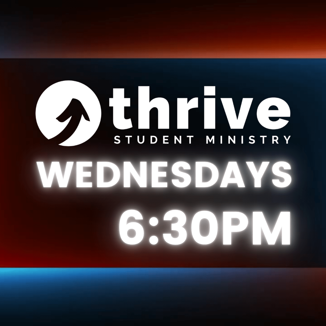 Thrive Student Ministry meets every Wednesday night from 6:30-8:30 pm (except for Rest Weeks- click here to see the calendar) in the youth room. Dinner will be served. Bring a friend!
